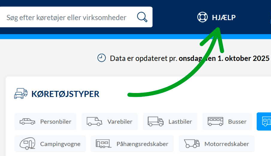 Når du logger ind på det nye Bilstatistik.dk, vil du have hjælpen lige ved hånden. Via menupunktet "HJÆLP" i toppen af siden vil du altid have hurtig adgang til vejledninger, videoguides og i det hele taget materiale, der hjælper dig med at få maksimalt udbytte af din adgang.